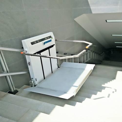 The barrier-free slanted lifting platform is designed and applied to stairs in residential houses and public places. Its compact and reasonable folding platform can be folded lightly when not in use, saving enough space for the stairs without affecting the passage of others at all. The ideal solution for wheelchair-accessible commercial and domestic use. It adopts the mature and general-purpose rope wheel key drive mode, which is efficient, safe and stable. With the intelligent control system, it is convenient for passengers to independently complete the operation and wireless operation in the operation room.